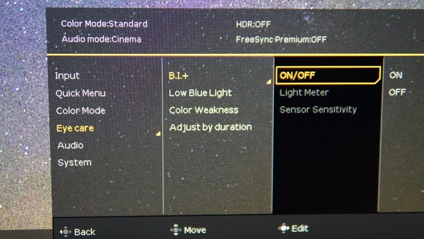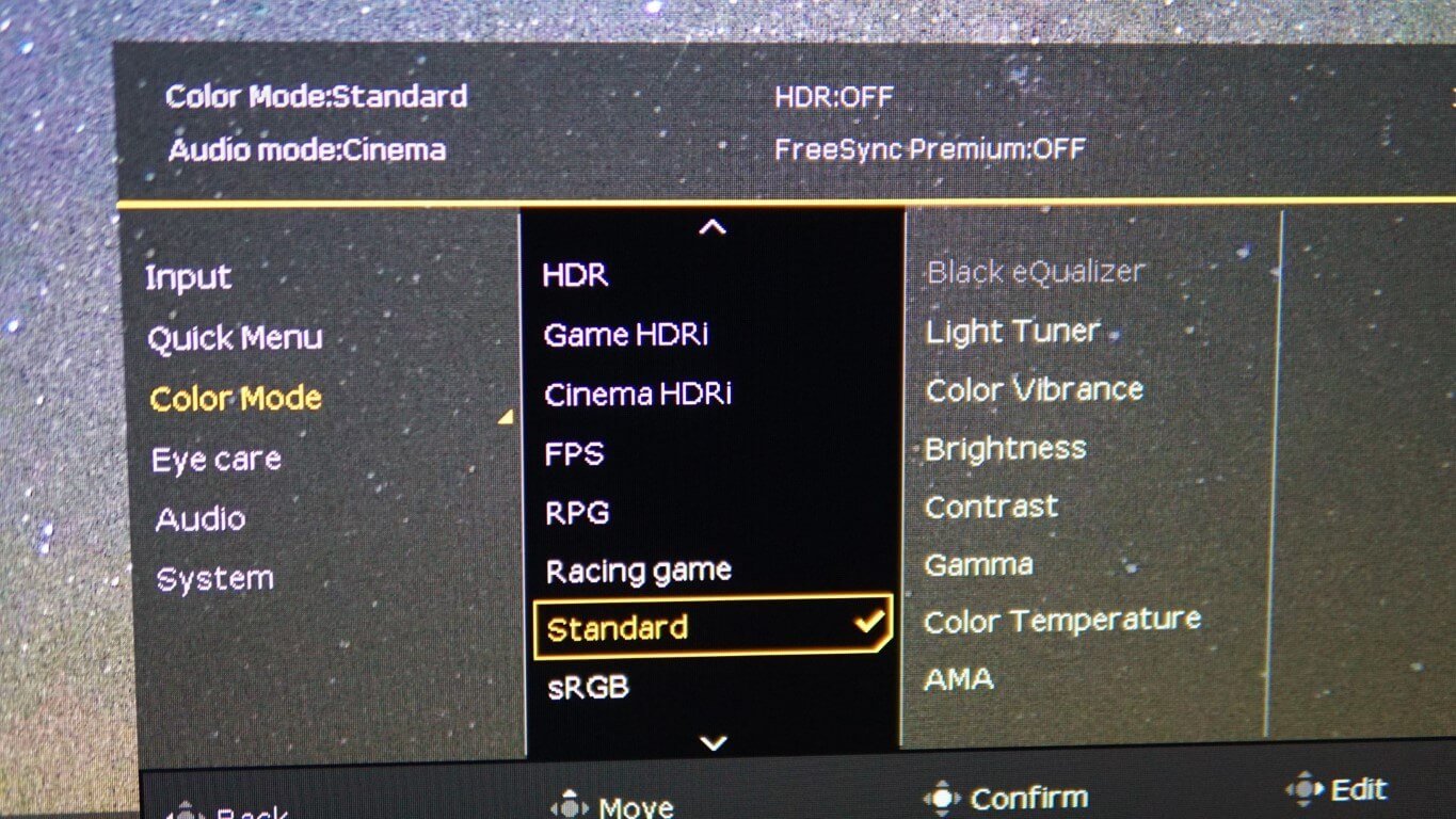 While the power button is on the rear side of the monitor, BenQ has placed a dedicated button for HDR modes on the bottom right side of the screen. One could easily mistake the button for the power button. However, the HDRi hotkey button is to let users easily switch between different HDR modes. It’s not a bad idea considering the fact HDR is now a huge part of gaming and also movies. Upon pressing the HDR button, the OSD HDR menu will pop up and lets you switch between HDR, Game HDRi, Cinema HDRi, and more.