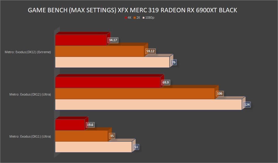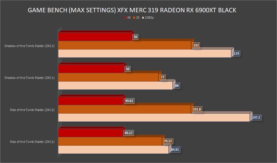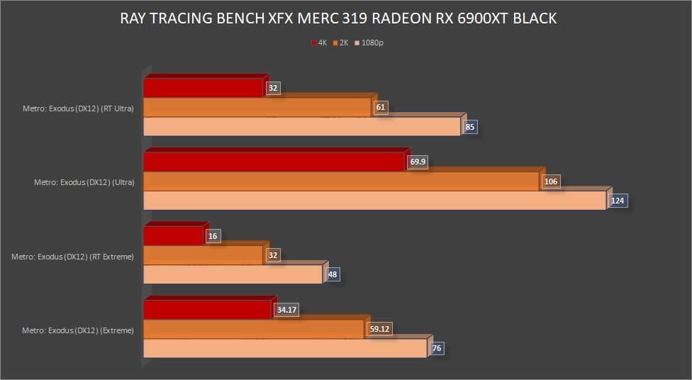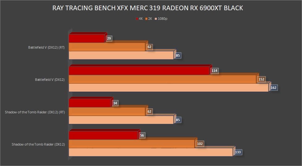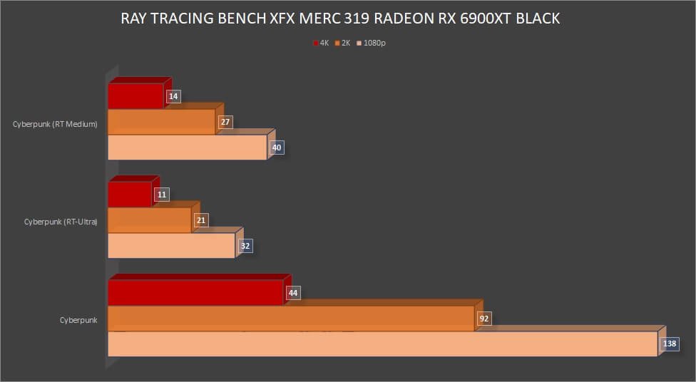 While we already know that NVIDIA takes the lead in ray tracing performance, the RX 6900 XT performed well on 1080p and 2K resolutions. However, the card did not perform well with ray tracing at 4K. Perhaps we will see an improvement on the next Radeon series.