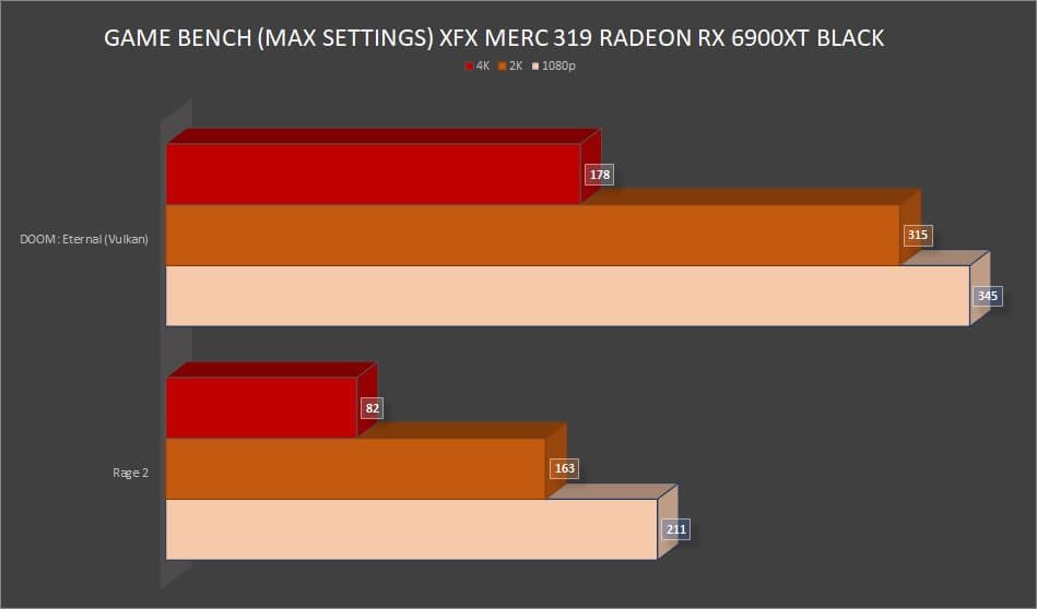 It’s time to take a look at how the XFX Radeon RX 6900 XT Merc 319 Black performs in gaming. Our test bench consists of the AMD Ryzen 3800XT processor at its default speeds and SMT enabled, ASUS X570-PLUS TUF GAMING motherboard, 32GB DDR4 GSkill Trident Z RGB RAM (4 x 8GB at 3600MHz speeds), a Kingston 1TB KC2500 SSD with the latest Windows 10 Pro build installed, XFX XTI 1000W PSU, a Corsair iCUE H100i RGB PRO XT AIO CPU cooler, and the graphics card itself. We got to try numerous games in 1080p, 2K, and 4K resolutions, and at the maximum settings for almost all the games.