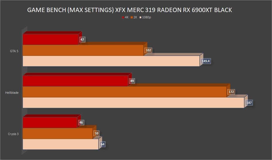 The new XFX Radeon RX 6900 XT Merc 319 Black graphics card offers better GPU frequencies than the reference design, along with a better phase power design. Although the card is quite big, the overall unit has a clean and industrial design. There is ample cooling already available on the card, starting from the triple fans, the large heat sinks, thermal pads on the PCB chips and VRM, the aluminum backplate, and more. The performance of the graphics card is very good for most of the games at 1080p, 2K, and 4K resolutions, except for a few that already is taxing on any card. Ray-tracing performance on the RX 6900 XT is decent, to say the least, and gamers will also be able to benefit from the ReBAR capability for higher framerates.