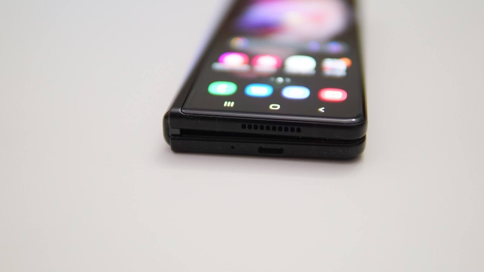 The smartphone has a side-mounted power button that also serves as the fingerprint scanner and is located on the right side of the device, along with a volume rocker. The SIM tray is placed on the left side, and when folded, the SIM tray then faces on the right side. The USB-C port and the speaker grill are placed on the bottom of the device. The speakers are tuned by AKG audio enhancements.