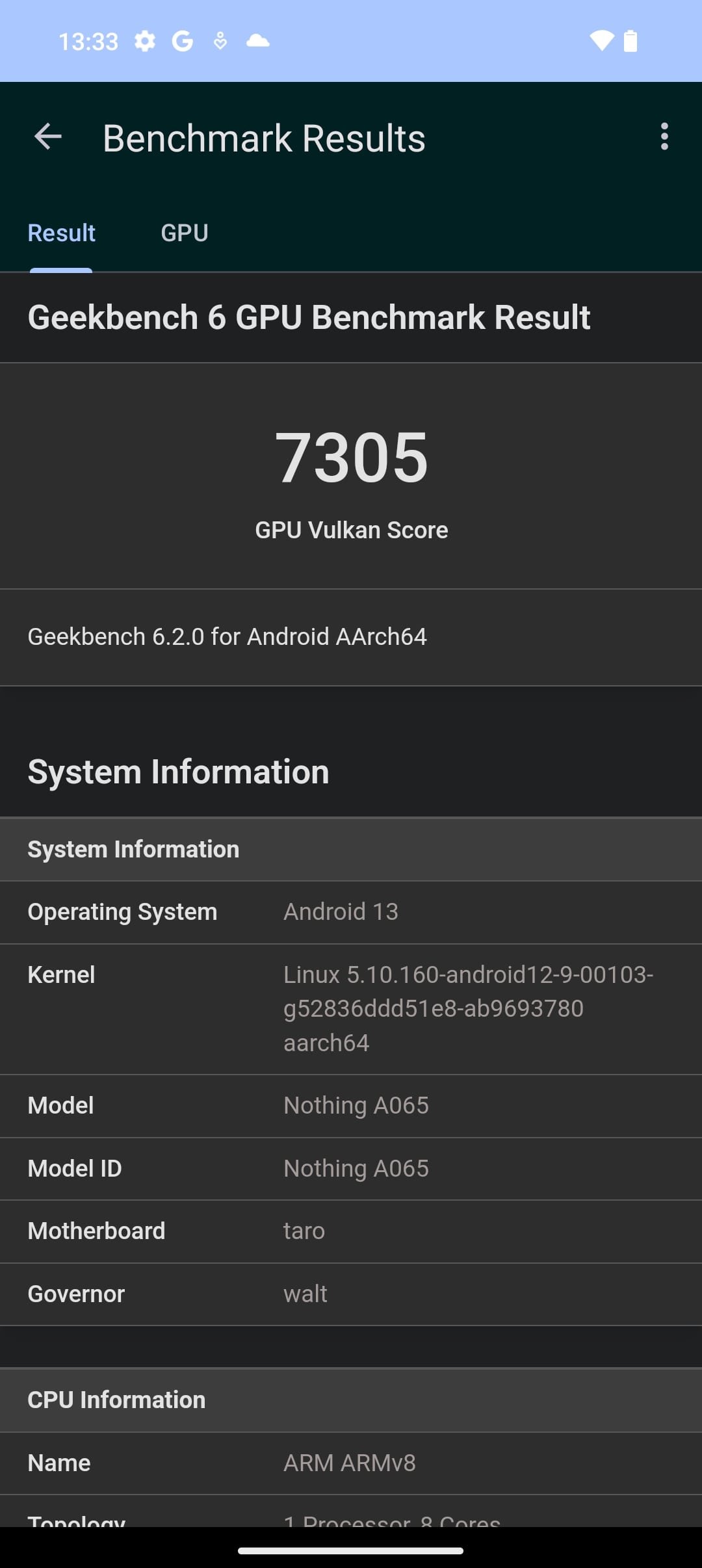 The 8+ Gen1 SoC also sports the integrated Adreno 730 GPU for mobile gaming with high-frametates. The Nothing Phone (2) comes in three configurations: 8GB RAM + 128GB memory, 12GB RAM + 256GB memory, and 12GB RAM + 512GB memory. The device runs on Nothing OS 2.0 (also available for the (1), and is based on Android 13. We ran some of the benchmarks, such as PCMark, GeekBench 6, Antutu v10, and 3DMark tests. Take a look at the scores below.