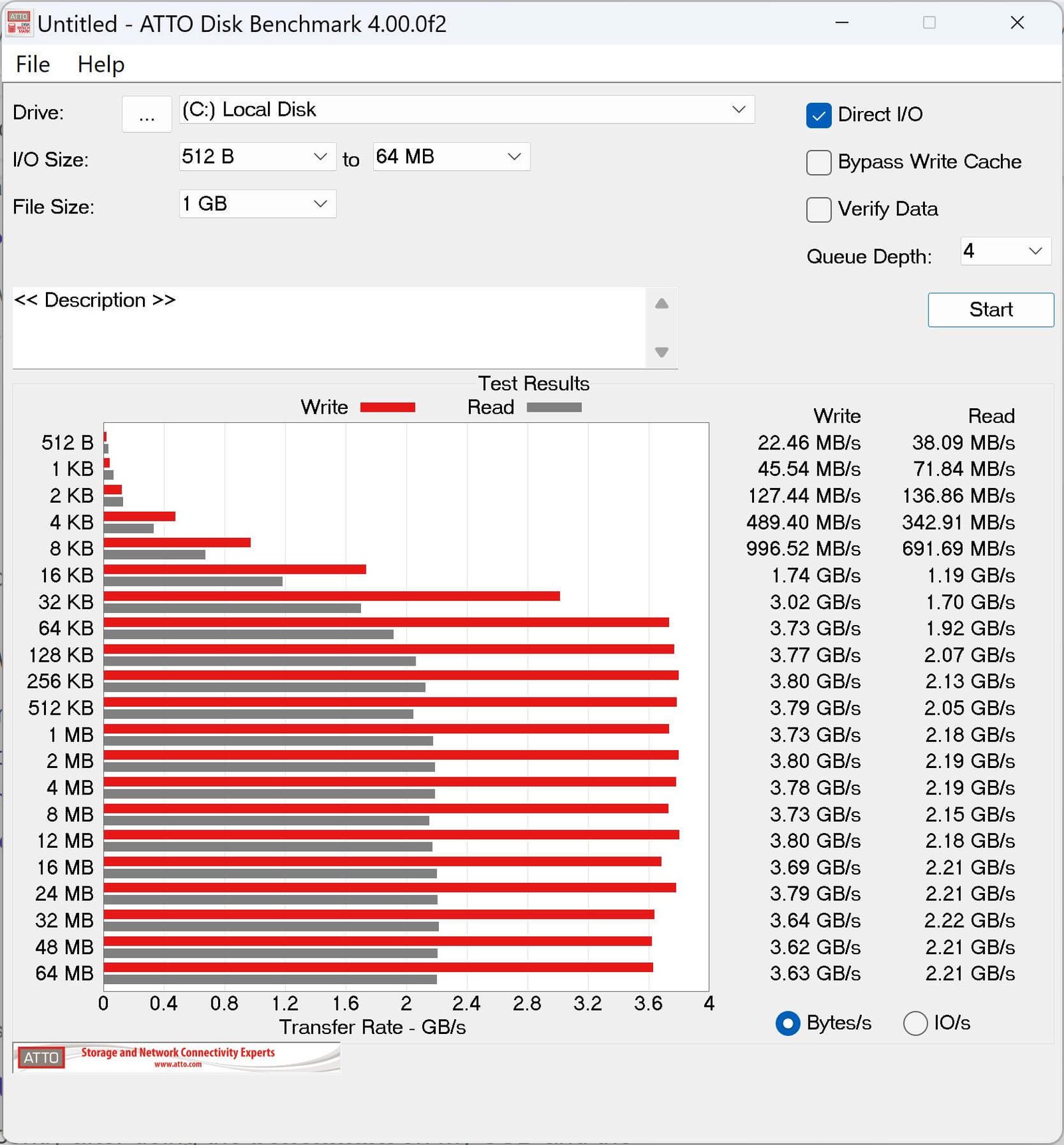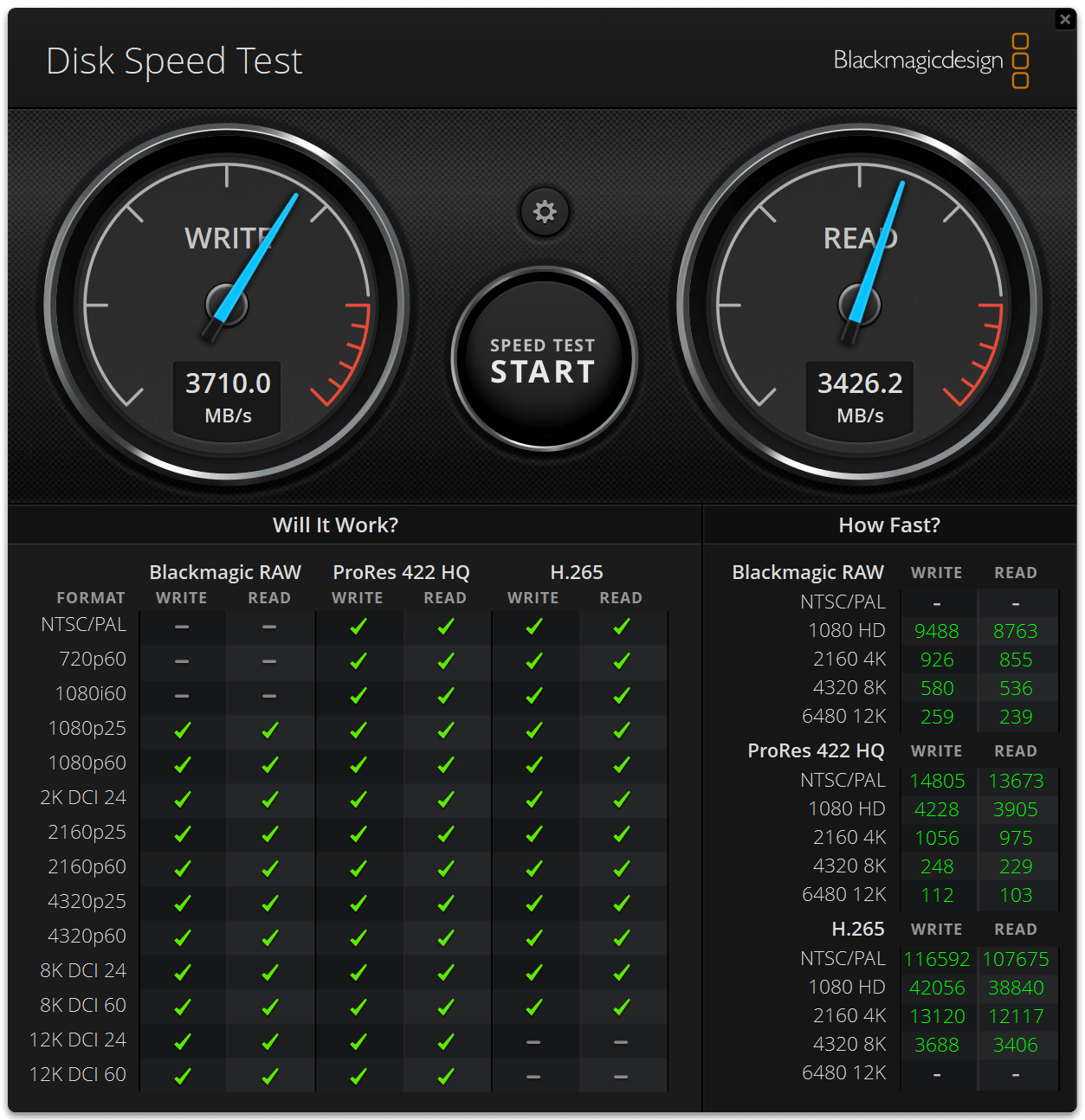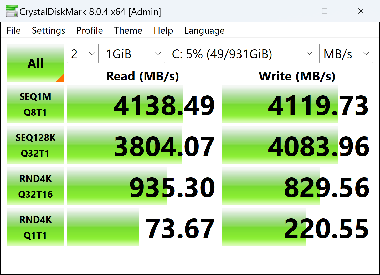 We also ran several benchmark tools such as CrystalDiskMark, AS SSD, DiskSpeed test, and ATTO. With CrystalDiskMark, we got sequential read speeds of 4139 MB/s, and write speeds of 4120 MB/s. With the AS SSD, we got 3531 MB/s read and 3695 MB/s write speeds. We also got similar speed results with the BlackMagic DiskSpeed test. It should be noted that during the heavy loads, the drive’s temperature went up to 53 degrees with the motherboard’s SSD heatsink. During idle situations, the temperature was around 47 degrees.