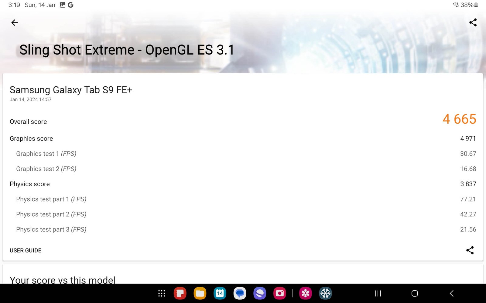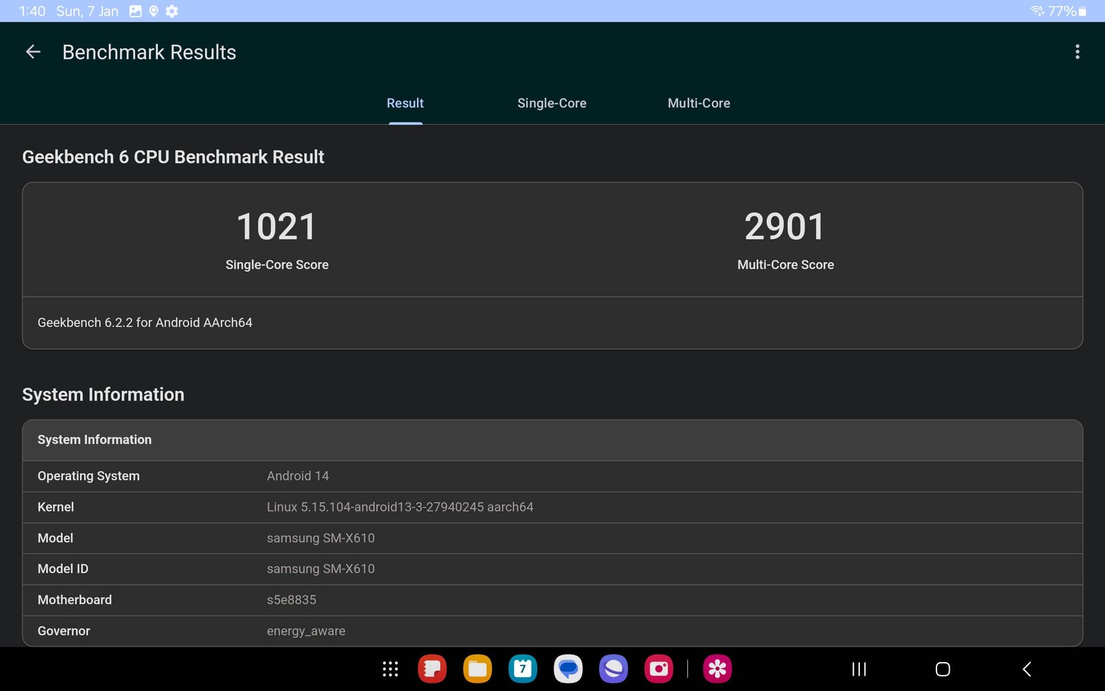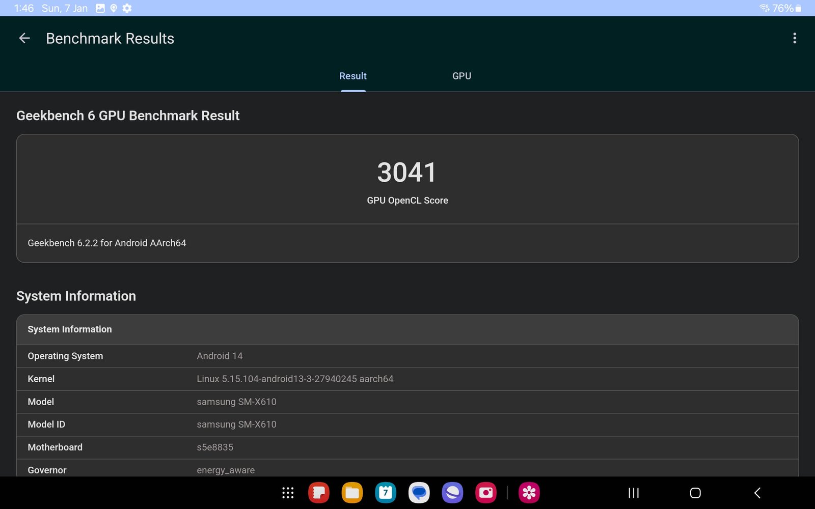 The tablet runs on the latest Android 14 OS with Samsung’s One UI 6 software. The GPU used on the Exynos 1380 SoC is the Mali-G68 MP5, which should be able to handle some games. We ran some benchmarks, such as GeekBench 6, Antutu, and PCMark 10 Work 3.0 Performance, and several 3DMark tests. Here are the scores.