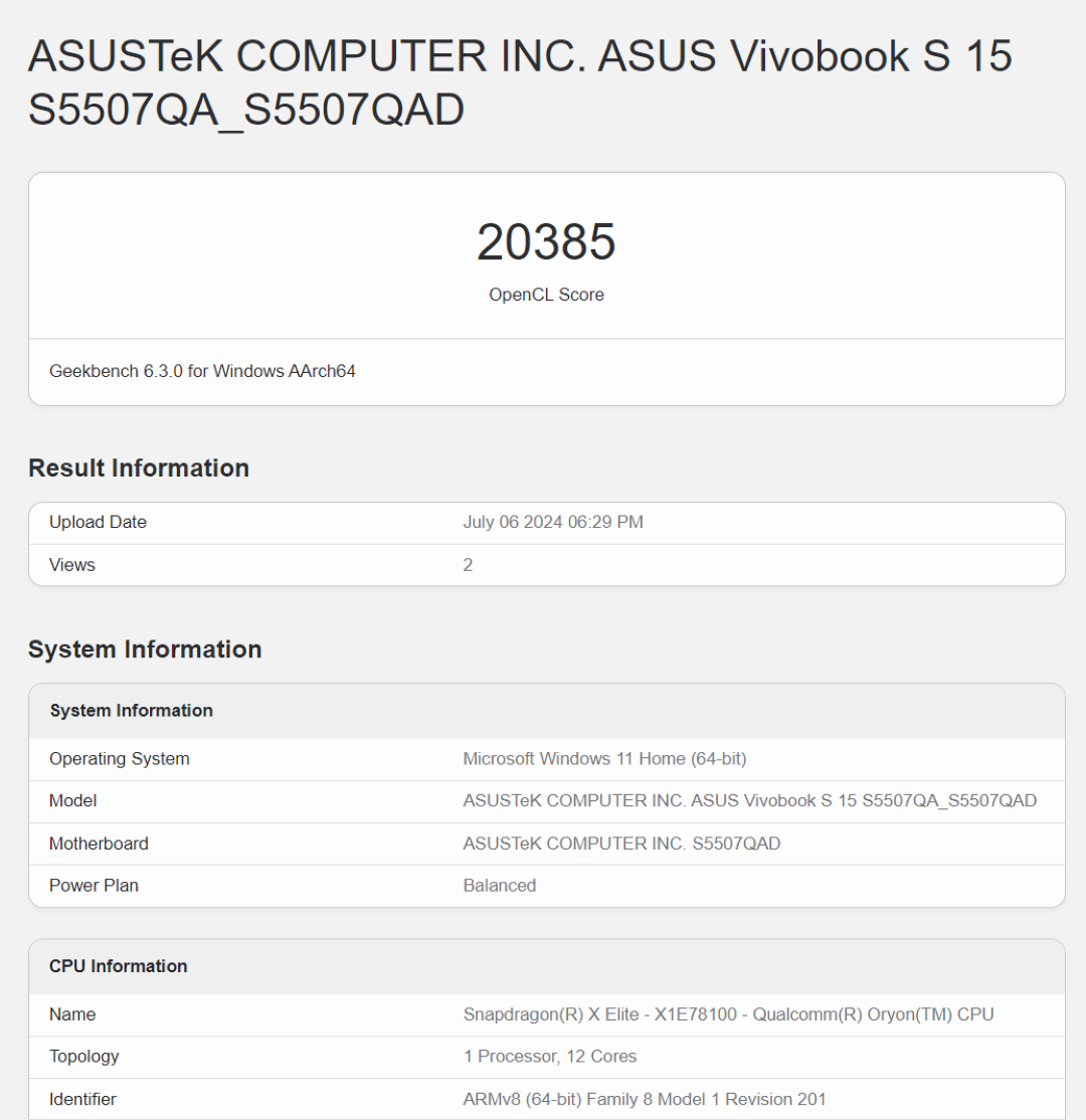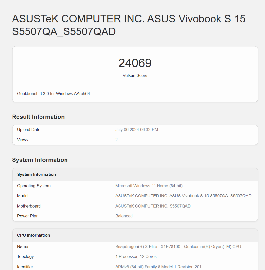 While we had the Vivobook S 15 (S5507), we also had the new ASUS NUC for review that features an Intel chip (review to be published soon). When comparing the performance of the Snapdragon SoC with Intel, the X Elite series chip performed more or less the same, and sometimes even better. Please do note that the benchmarks we performed earlier were on normal balanced power profile modes. We did run the Geekbench 6 CPU in Performance mode, and scores were just slightly higher than the Balanced mode results.