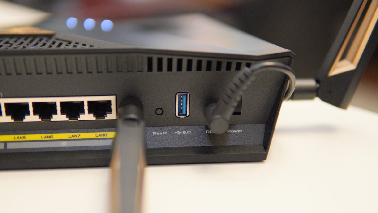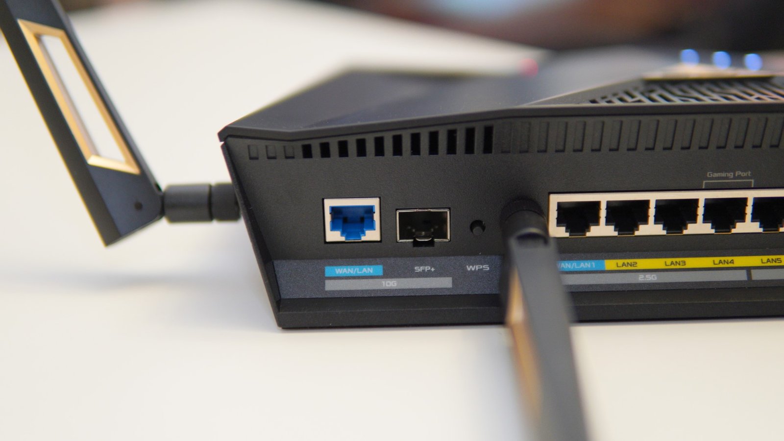 The right end on the rear panel also has a USB 3.0 port, along with a power connector and a Reset button. The left end of the rear panel comes with a WPS button, the main WAN/LAN connector, and a SFP+ connector (both with support for 10G connections). While the router shows that the USB uses the 3.0 standard connection, ASUS mentions on their website that it’s a USB 3.2 Gen1 port.