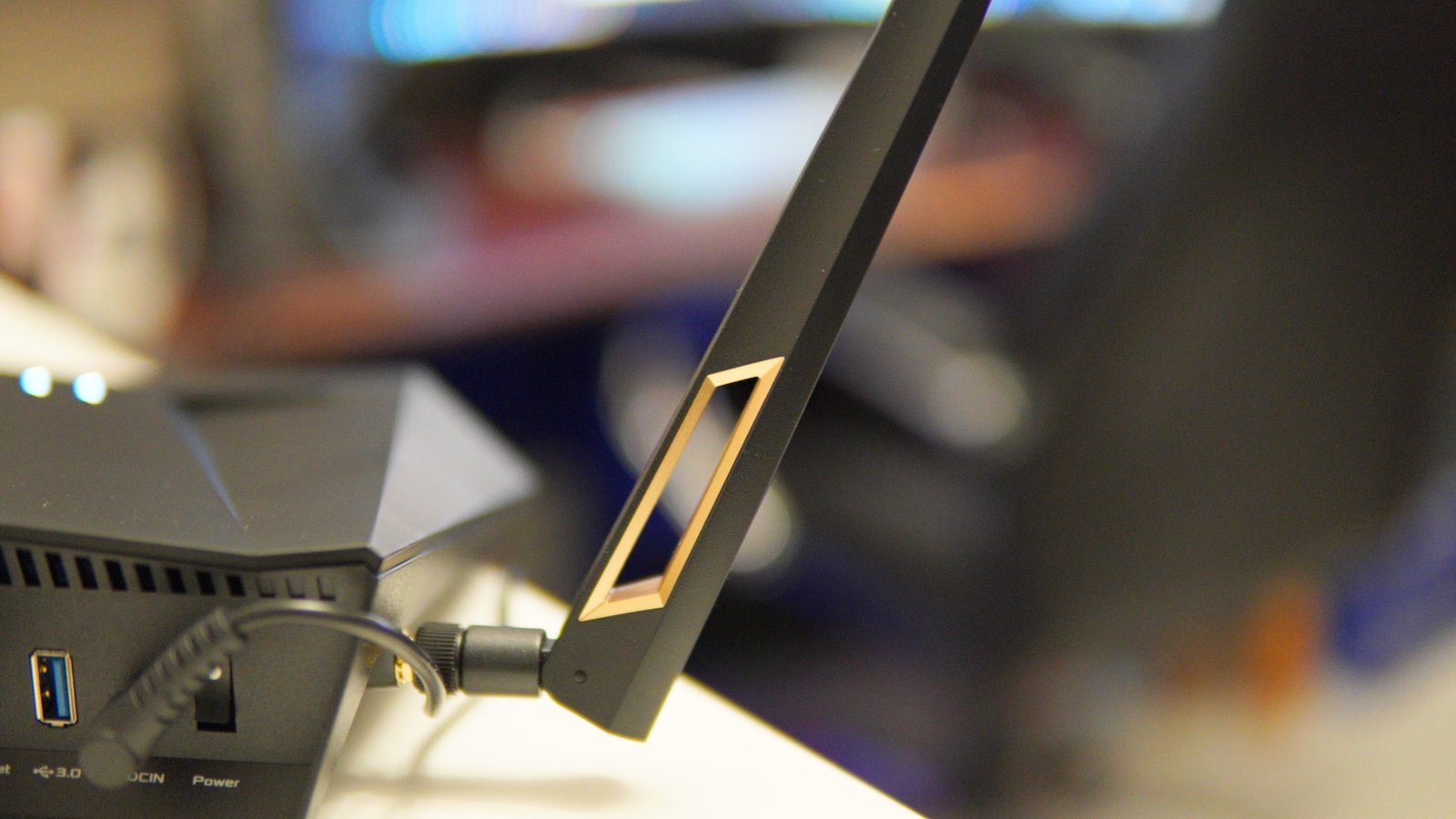 The design on the sides is also the same as the AX88U series routers. Two of the four antennas are placed on either side of the router. As you can see, the antennas have the gold accents, once again borrowed from the previous models.
