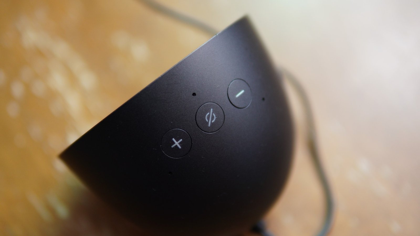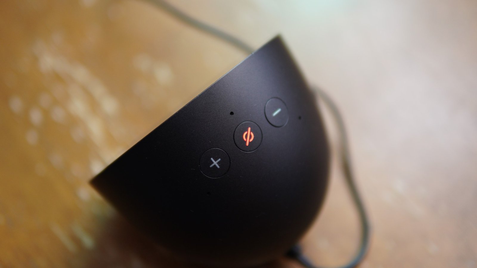 The mics and buttons are located on the top portion of the device. The buttons include the Volume up, Volume down, and Mic mute/unmute. The mute button is essential for those who prefer privacy, so the device does not listen or capture anything spoken in the room.