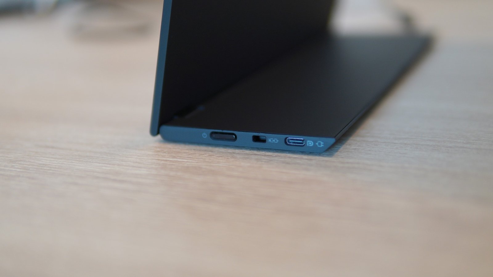 The M14T features buttons and ports on either side of the stand. On the right side, there is the main power button, a Kensington security slot, and a high-speed USB-C port with support for Power Delivery 2.0 charging, and DisplayPort 1.2 connectivity. On the left, you have another high-speed USB-C port (also with support for PD 2.0 and DP 1.2), a button to adjust the brightness and saturation, and a button for the OSD menu.