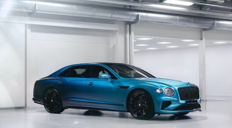 Bentley’s new and exclusive ‘Ombré by Mulliner’ paint finish, which blends two separate colours over the length of a car, has been applied to a four-door sedan for the first time. The new Flying Spur’s paint transitions from vibrant Topaz Blue at the front, to the darker Windsor Blue rear, with the fade occurring through the mid-section of the car across the doors, sills and roof. The process takes nearly 60 hours for two highly skilled paint technicians to complete, and starts with the spraying of the individual colours at the front and rear of the body.
