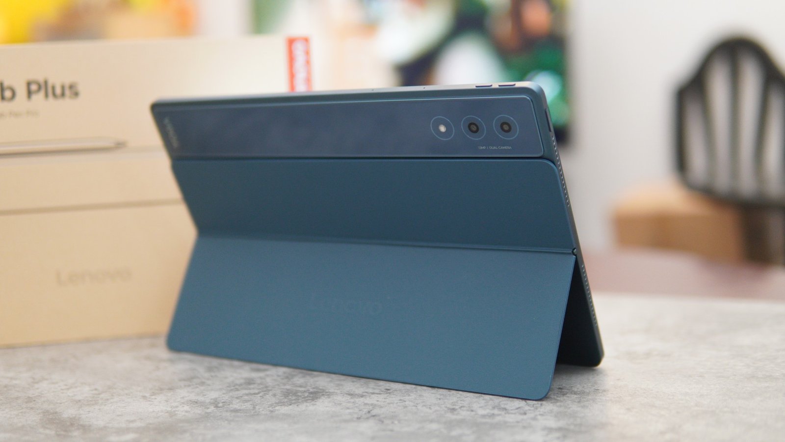Lenovo has also included the magnetic kickstands, again with the same Tidal Teal blue color. Lenovo has also included the Lenovo Tab Pen Pro with the package, and the pen can be easily mounted magnetically on the top side of the tablet.