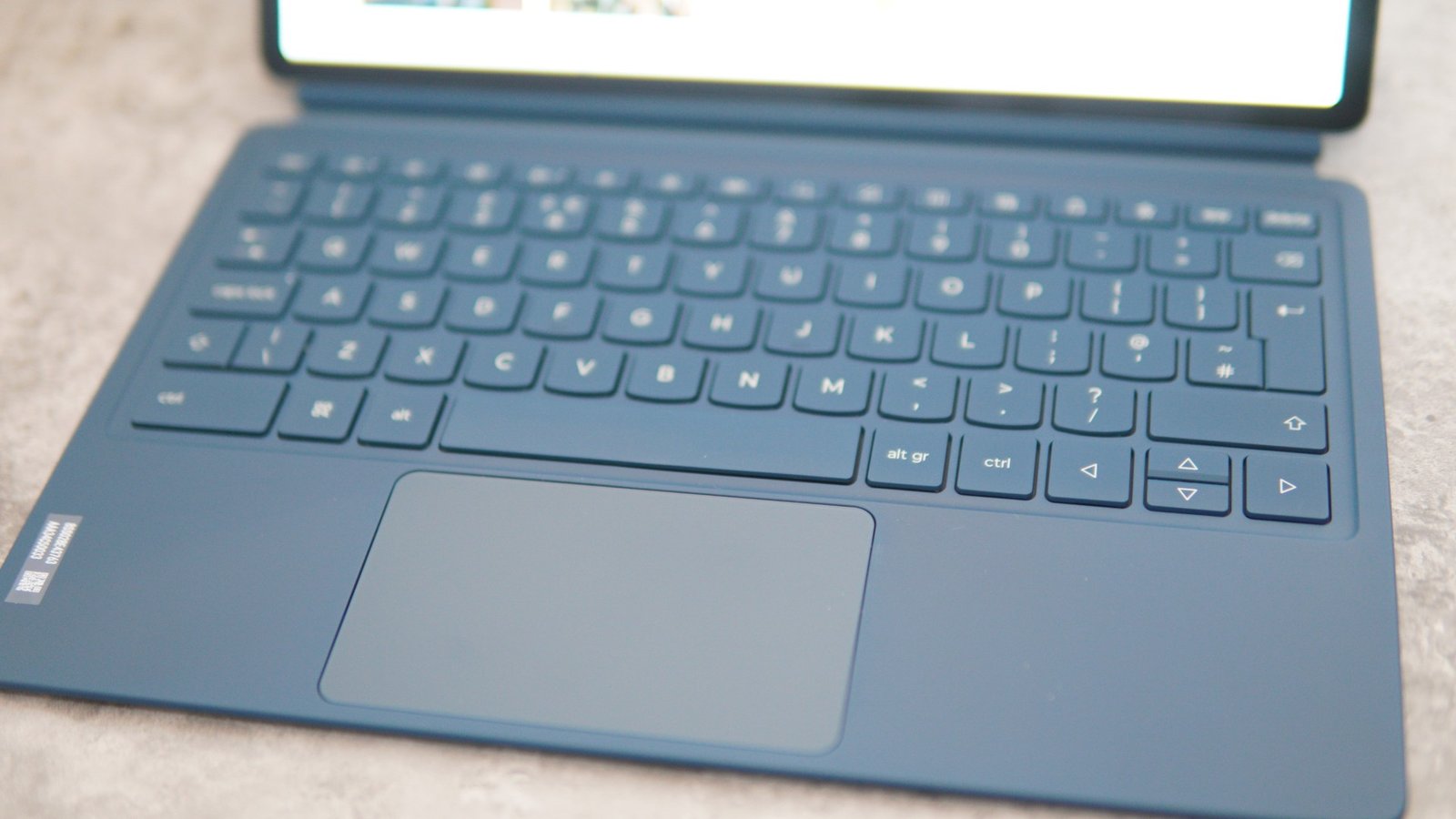 Lenovo has included a Yoga Tab Plus keyboard with the tablet, and it comes in Tidal Teal blue color. The keyboard comes with all the necessary keys, and the keycaps are similar to the ones found on Lenovo ThinkPad or Yoga laptops. The trackpad is small but easy to use and has a smooth surface.