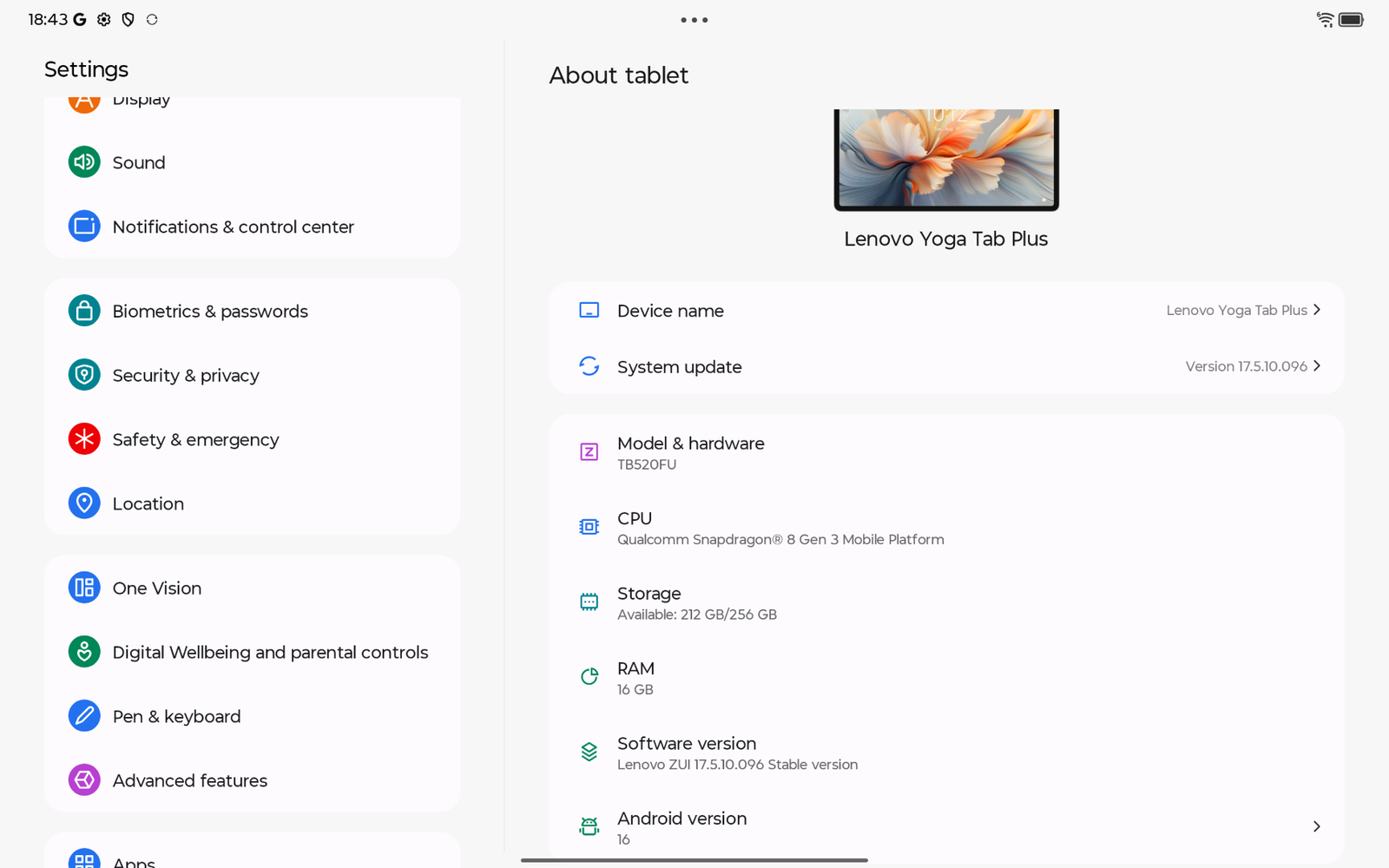 The Lenovo Yoga Tab Plus comes powered by the Snapdragon 8 Gen 3 chipset, along with 256GB of internal storage and 16GB of LPDDR5X RAM. The device runs on Android 16 OS atop the Lenovo ZUI 17.5.10.096 software. The device runs fast, and performance is snappy.