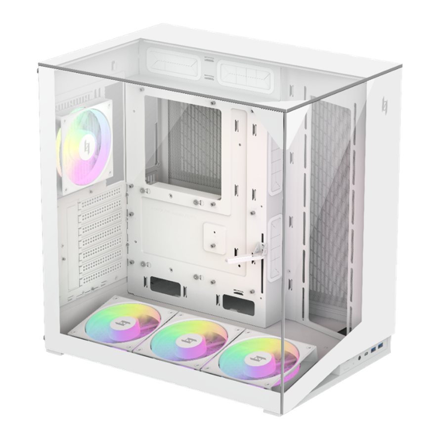- Spacious Dual-Chamber Interior: Supports ATX motherboards, GPUs up to 425mm (NVIDIA 50 Series ready), CPU coolers up to 182mm, PSUs up to 220mm, dual 360mm radiators, and up to four storage drives (2× 3.5in HDD + 2× 2.5in SSD), with generous space for clean cable routing.