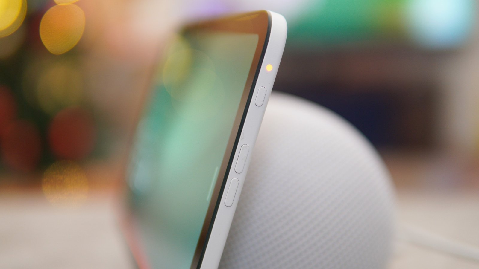 The physical controls are located on the right side, which includes the volume rockers and the microphone enable/disable button. This is a great addition to quickly disconnect the front camera and microphone from turning on. The Echo Show 8 comes in both graphite and white colors, and we got the latter color option for review.