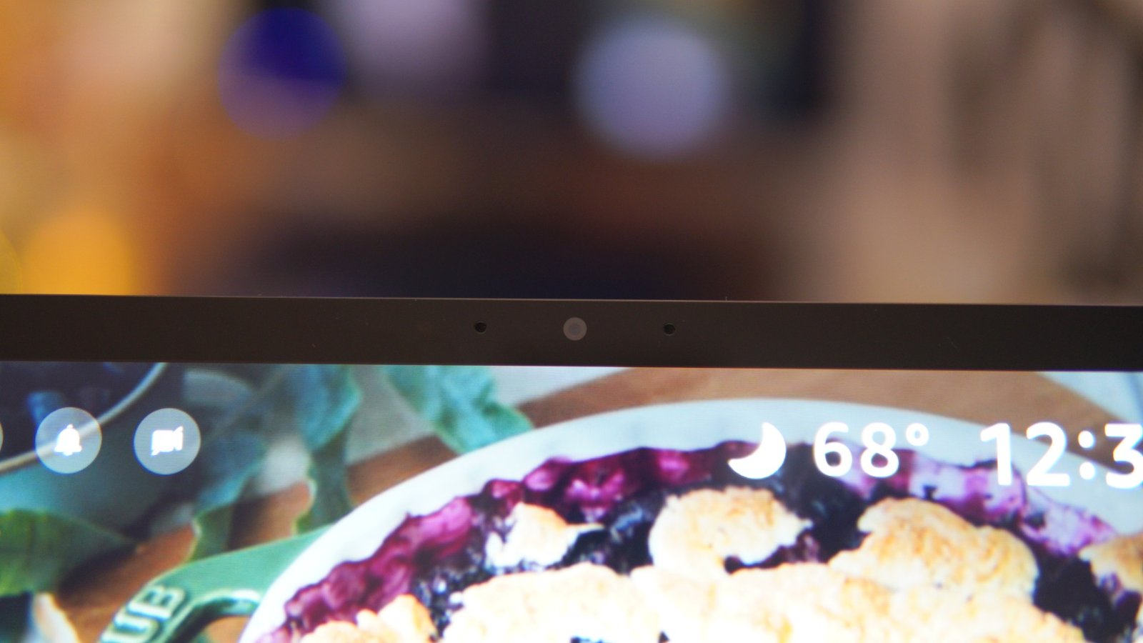 While the bezels are thinner than last generation, they’re not as thin as you would see on modern tablets. There is a 13 MP front-facing camera with auto-framing capability. There are two microphone holes placed on either side of the camera.