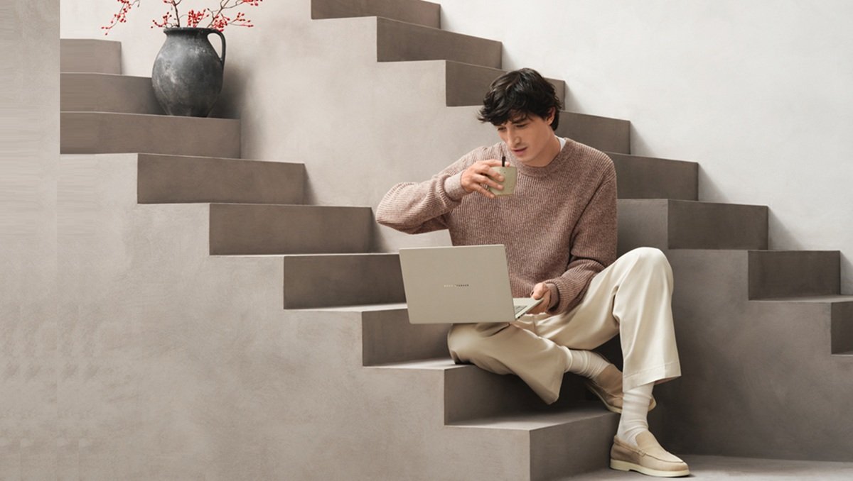 There is quiet confidence in carrying less — and the Zenbook A series embodies exactly that. The Zenbook A14 weighs just 990 grams, offering an almost weightless experience for users constantly on the move. The Zenbook A16, despite its expansive 16-inch display, remains remarkably light at just 1.2kg — redefining what large-screen portability looks like. Both laptops are sculpted from ASUS Ceraluminum, a distinctive material that combines strength with a refined tactile finish. Resistant to scratches, wear, and smudges, it is designed not only to look premium — but to stay that way.